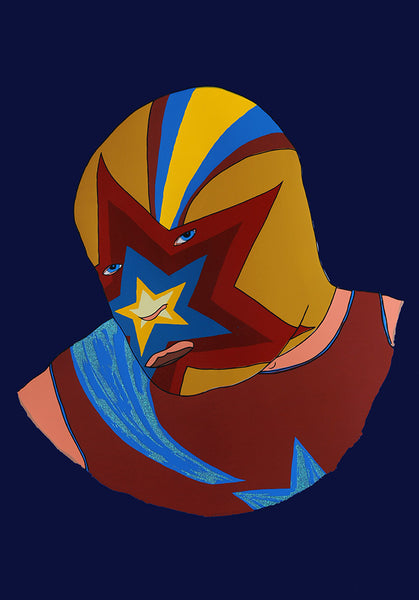 While in Mexico, however, Lloyd discovered the ‘Lucha Libra’ wrestling culture. The wrestlers expressed traditional values, folkloric traditions, mass entertainment and political activism, which Lloyd felt was missing from the festival he had originally been to see. This led to him to make this series of screenprints which incorporate Mexican culture and fine art.