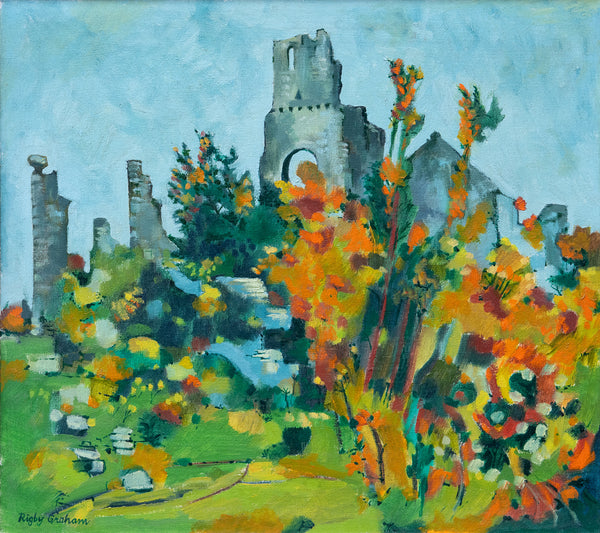 Principally a topographic artist, Rigby Graham was born in Stretford in 1931. He moved to Leicester in his early childhood where he attended Leicester College of Art, specialising in mural painting. After teaching at local schools, Graham returned to lecture at the College of Art, firstly in Graphic Design and Printing, then in Education and latterly in Bookbinding. He retired from teaching in 1983.
