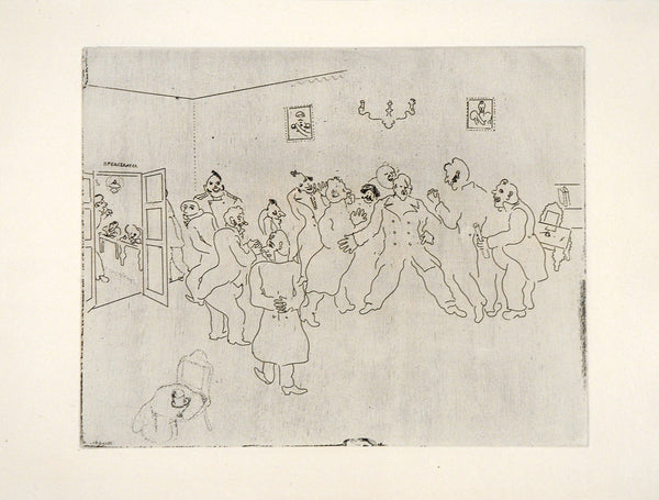 The etchings for the Dead Souls were executed between 1923 and 1927 and printed in 1927 where they then lay in Vollard’s warehouse ‘sleeping their sweet sleep’ as Chagall put it. They were finally united with the text and published by Tériade in 1948 after Vollard’s untimely death.