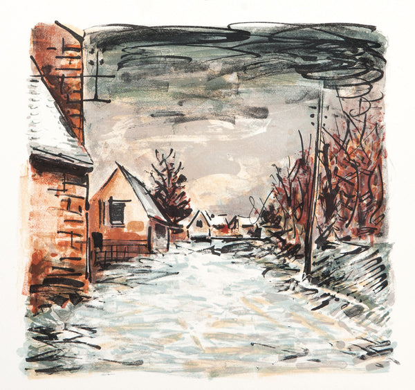 Vlaminck was born in Paris of ‘bohemian’ musical parents in 1876 and he in turn became an accomplished musician. It was only in 1900 when he met the painter André Derain that he started to take art seriously. Vlaminck’s typical subject matter became rural landscapes, often with overcast skies or storm scenes, lonely village streets or cottages and still-lifes.