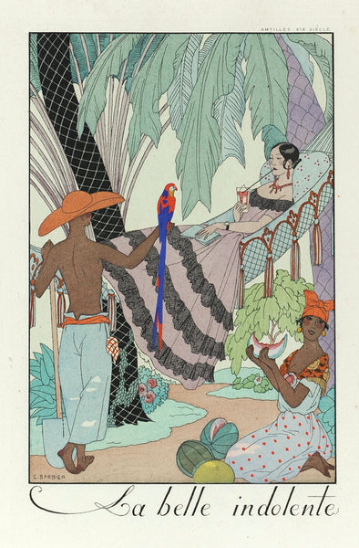 Barbier’s illustrations and pochoir prints from the 1920s are widely considered to epitomise the spirit of Art Deco and Jazz Age Paris with their combination of diverse influences such a Orientalism, Aubrey Beardsley, classical Greek vase decorations and 18th century French paintings. He died in 1932 at the zenith of his artistic career, with regular contributions to L’Illustration magazine.