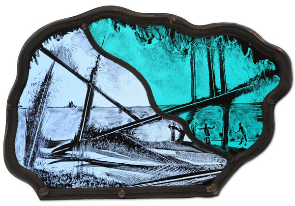 Signed and dated unique hand painted stained glass.