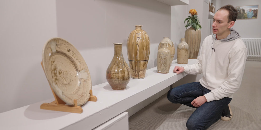 Watch Max talk about Jim Malone's famous ash glaze, including pots from his 2023 exhibition.