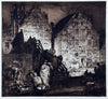 Signed copper etching. 150 proofs published. The old houses are those of the Spanish Guild.
