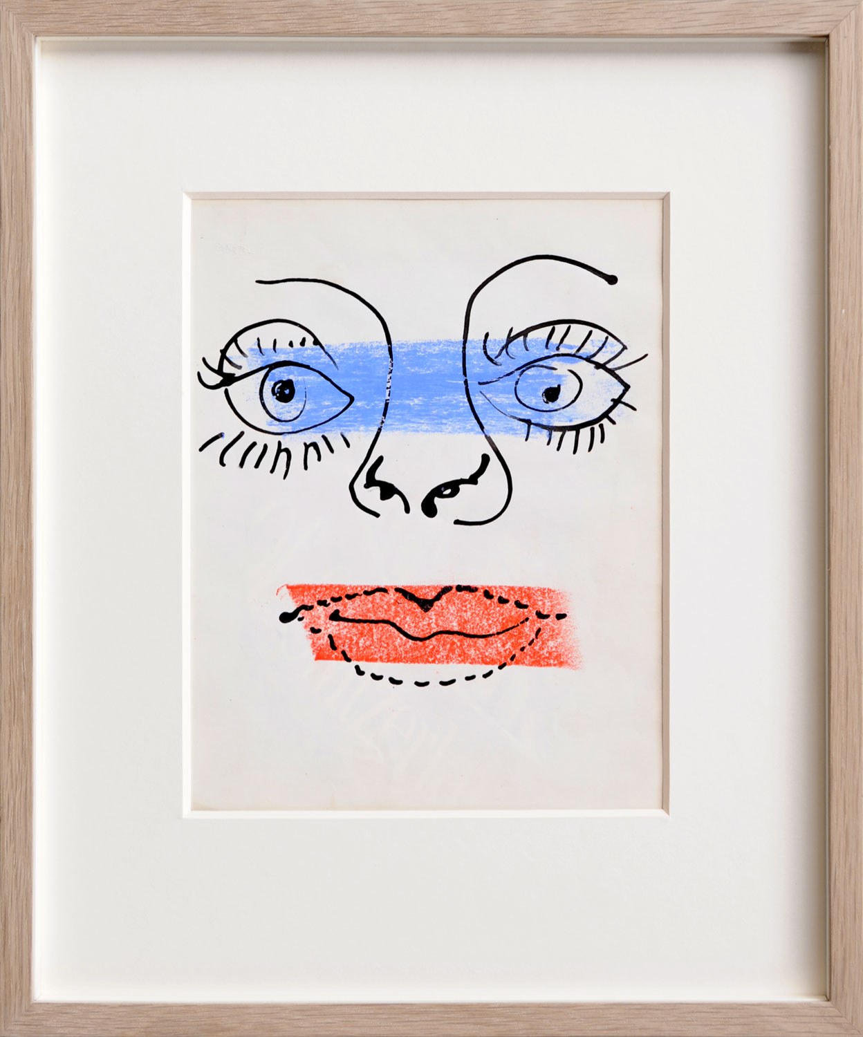 Wonderfully spontaneous drawing from John Piper’s c1971 sketchbook, available for sale for the first time, in which Piper can be seen to be working on ideas that he would later use in some of his Foliate Head prints,the Eye and Camera series and his ceramic platters.
