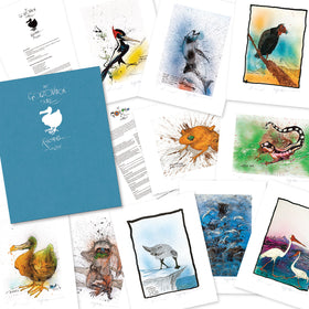 The Critical Critters Suite is a collection of 24 signed, limited edition, de-bossed prints dedicated to critically endangered animals, insects, fish and birds.