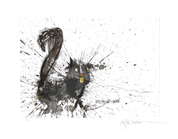 The Rat-arsed skunk is the smelliest critter upon Toadstool Island. Not having a drinking problem, the skunk got his name from the work it does on the island....keeping those pesky rats at bay. No rats have ever been sighted on the island. When not out patrolling, the skunk can be found down at The Old Elephant's Trunk with a tipple of Pernod, its favourite.
