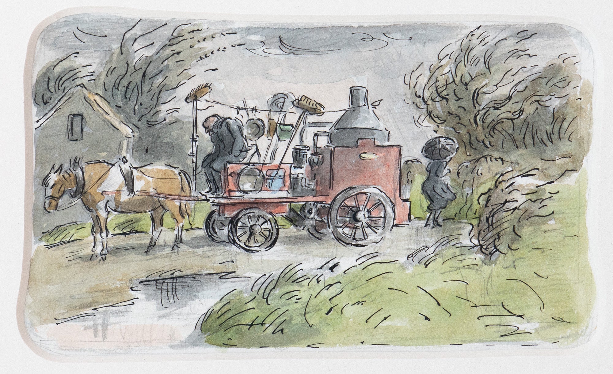 Ardizzone studied art at Westminster School of Art in 1920-1 under Bernard Meninsky. He was an official war artist during World War II, working widely in Europe and North Africa, and his illustrated diaries are notable records. After the war he established a strong reputation as a book illustrator and writer. He had a retrospective at the Victoria and Albert Museum in 1974.