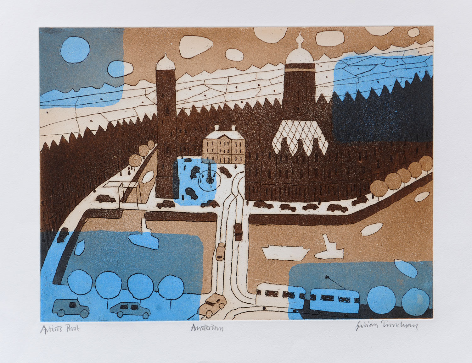 In 1935 he set up his etching studio at Durham Wharf in Hammersmith, where he remained until his death in 1988. From 1955-63, Trevelyan worked at the Royal College of Art and became Head of the Etching Department. Highly enthusiastic, he became an influential teacher, with students including David Hockney, Ron Kitaj and Norman Ackroyd.