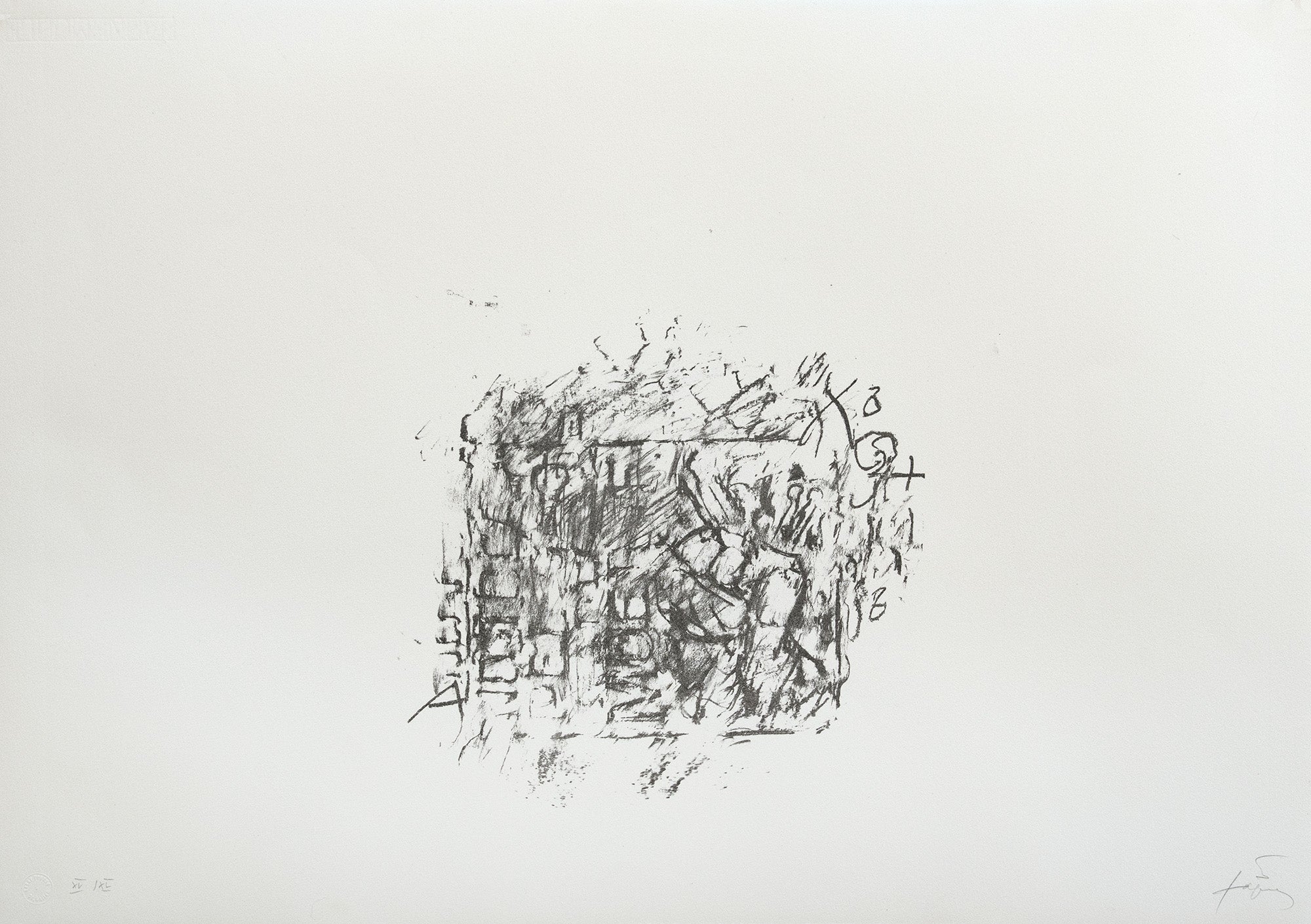 A Spanish painter, lithographer and etcher, Tàpies was born in Barcelona. He studied law at Barcelona University 1943-6, then gave this up to devote himself to painting. He studied for two months in 1944 at a drawing school in Barcelona, the Valls Academy; otherwise self-taught. In 1945-7 he made many works with thick impasto, collages, found objects and graffiti.