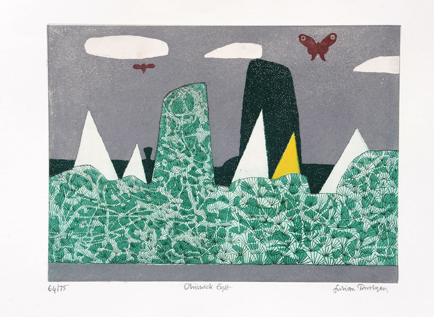 In 1935 he set up his etching studio at Durham Wharf in Hammersmith, where he remained until his death in 1988. From 1955-63, Trevelyan worked at the Royal College of Art and became Head of the Etching Department. Highly enthusiastic, he became an influential teacher, with students including David Hockney, Ron Kitaj and Norman Ackroyd.