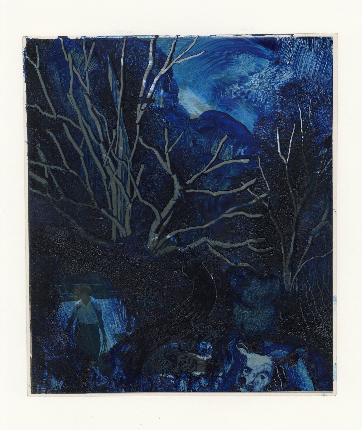 A combination of Chris' oil painting and sgraffito technique with found vintage alpine photographs.