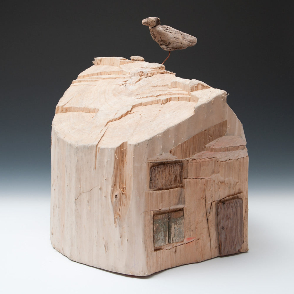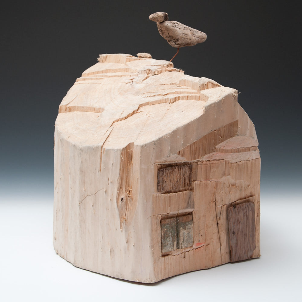 He is now based in Borth near Aberystwyth in Wales, where the flotsam and jetsam from the nearby sea is his only source of materials. Working with found objects, nothing is changed - simply introduced to one another. His driftwood pieces, usually birds, boats or mythical beasts, are full of his passion, integrity and wonderful humour.