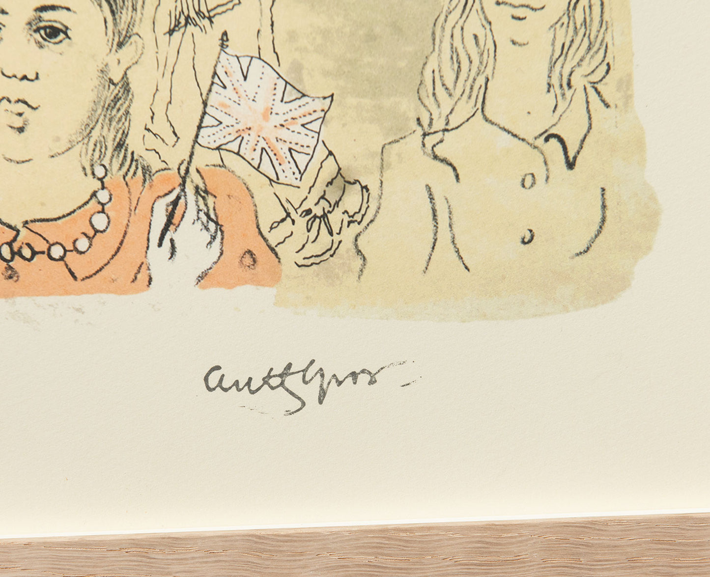 In 1952 a ‘Coronation Series’ to be launched to celebrate Elizabeth’s coronation the following year was proposed, which was to comprise 40 lithographs printed at the Royal College of Art under the direction of Edwin la Dell, who took the opportunity to champion lithography at the college. In the end 36 artists contributed prints which were presented for sale in portfolios in an edition of 50. None of the portfolios were numbered and it remains unknown how many were printed – only that certain contributions, like Gross’, are today fantastically scarce.