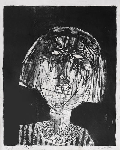 Signed monotype. A monotype is a unique image printed from a polished plate, such as glass or metal, which has been painted with a design in ink.