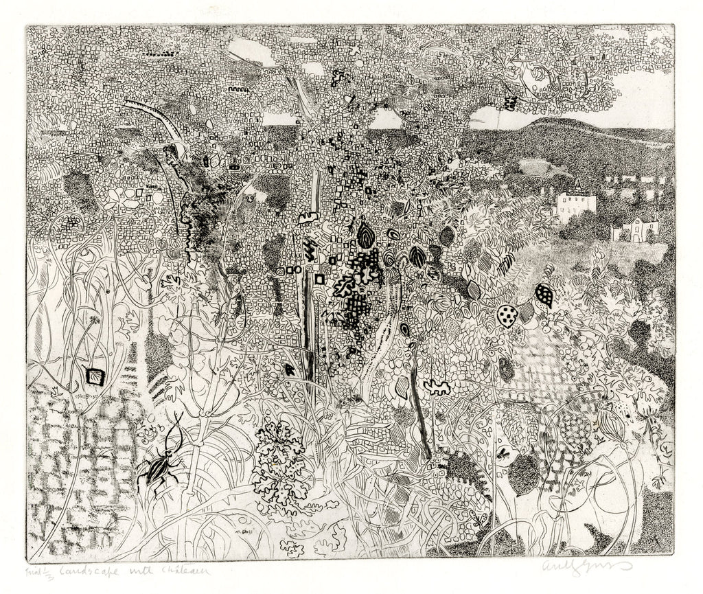 Gross has titled this proof Landscape with Chateau, signed and numbered, Trial 1/3.