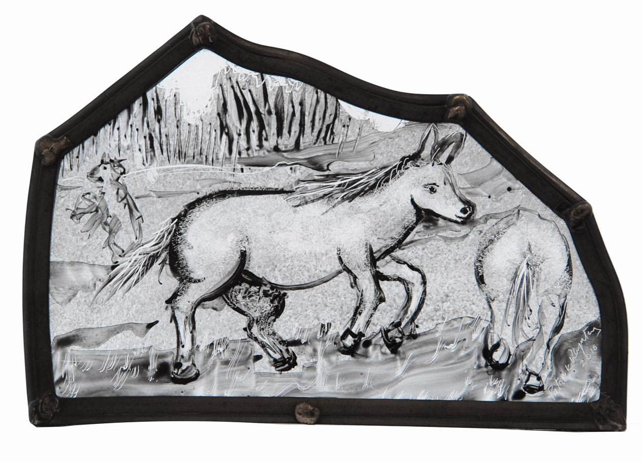 These panels are all signed and dated and are best viewed when lit from behind and have been designed to hang against a window or to stand on a window sill. The panels are made with two hooks on the back to allow hanging and will come with translucent thread to do so.