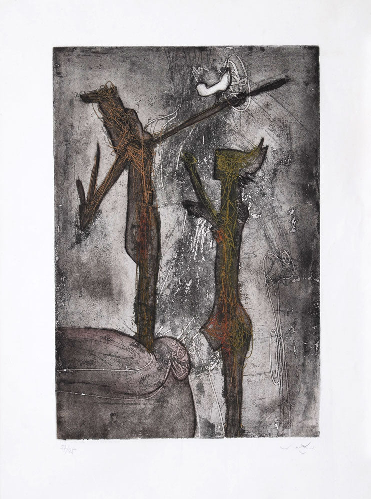Matta emigrated to the USA in 1938, where he stayed for the next ten years documenting the political anxiety in disturbed oil paintings. Though his name became more widely known, his ties to the Surrealists were severed following allegations that his affair with the wife of Arshile Gorky provoked his suicide. Expelled from the group, he lived between Europe and his homeland of South America, where he was a staunch defender of the country’s socialist movements. Matta died in 2002.