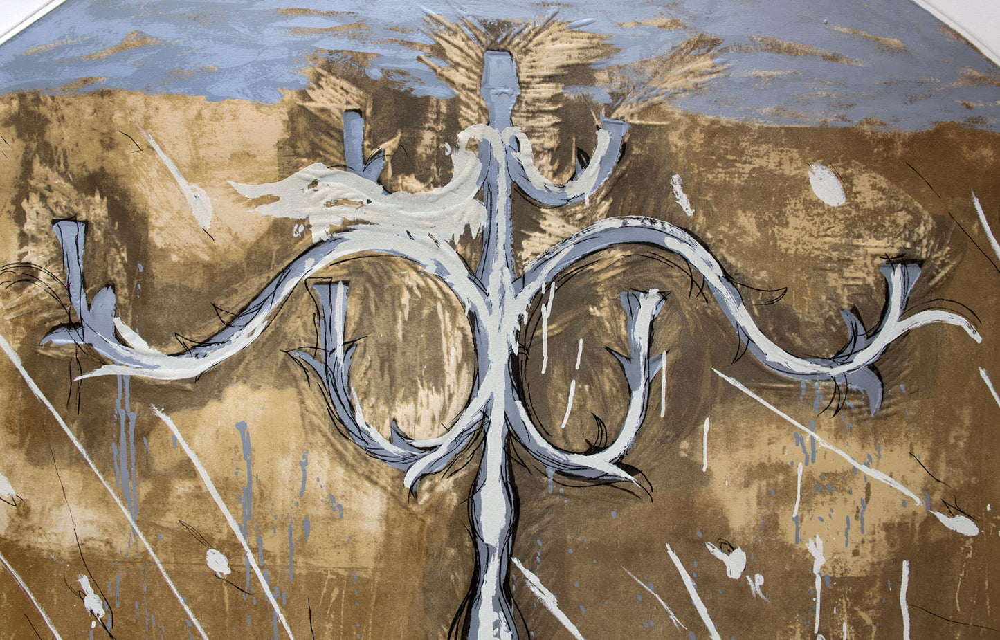 Extra large signed, dated and numbered original screenprint with etching, carborundum, embossing and glitter.