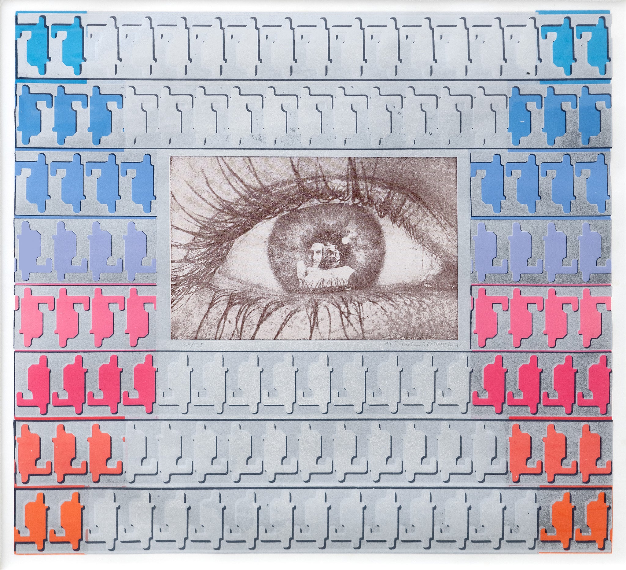 Based on a newspaper cutting of photographer Roger Murray Leach reflected in the eye of actress Sandra Fehre.