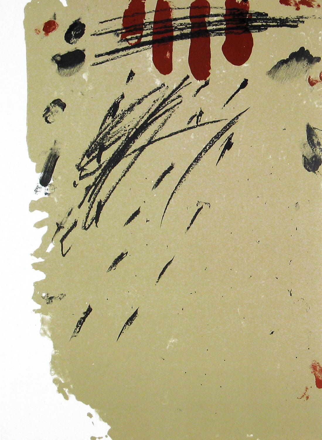 A Spanish painter, lithographer and etcher, Tàpies was born in Barcelona. He studied law at Barcelona University 1943-6, then gave this up to devote himself to painting. He studied for two months in 1944 at a drawing school in Barcelona, the Valls Academy; otherwise self-taught. In 1945-7 he made many works with thick impasto, collages, found objects and graffiti.