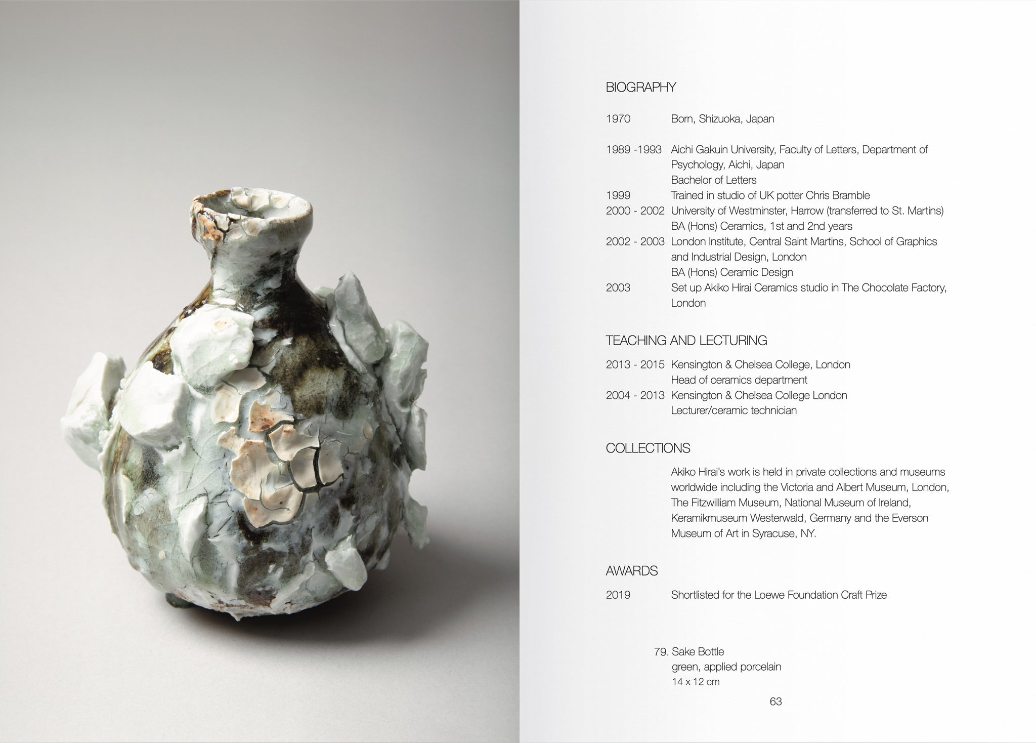 64 page monograph with photographs of Akiko Hirai ceramics, foreword by Lisa Hammond and essay by Lucy Davies.