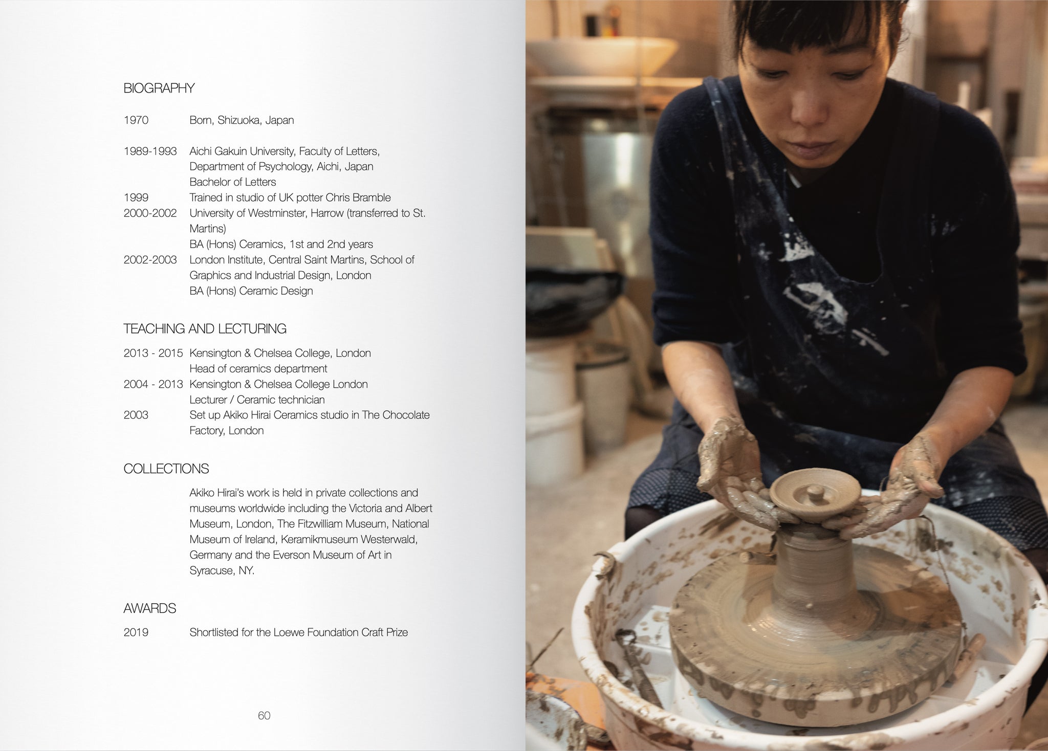64 page monograph with essay by Akiko Hirai, photographs of her at work in her London studio and photographs of her Goldmark exhibition pots.