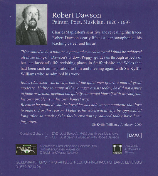 Robert Dawson was born in 1926. Leaving school at 17, Dawson was offered a scholarship to Stoke-on-Trent College of Art, but was persuaded by his mother to join a solicitor’s office. Aged 22, Dawson joined a touring dance band, performing in US Airforce bases in Germany. After studying English and Art at Clarendon College, Nottingham, in 1965, he trained as a primary school teacher.