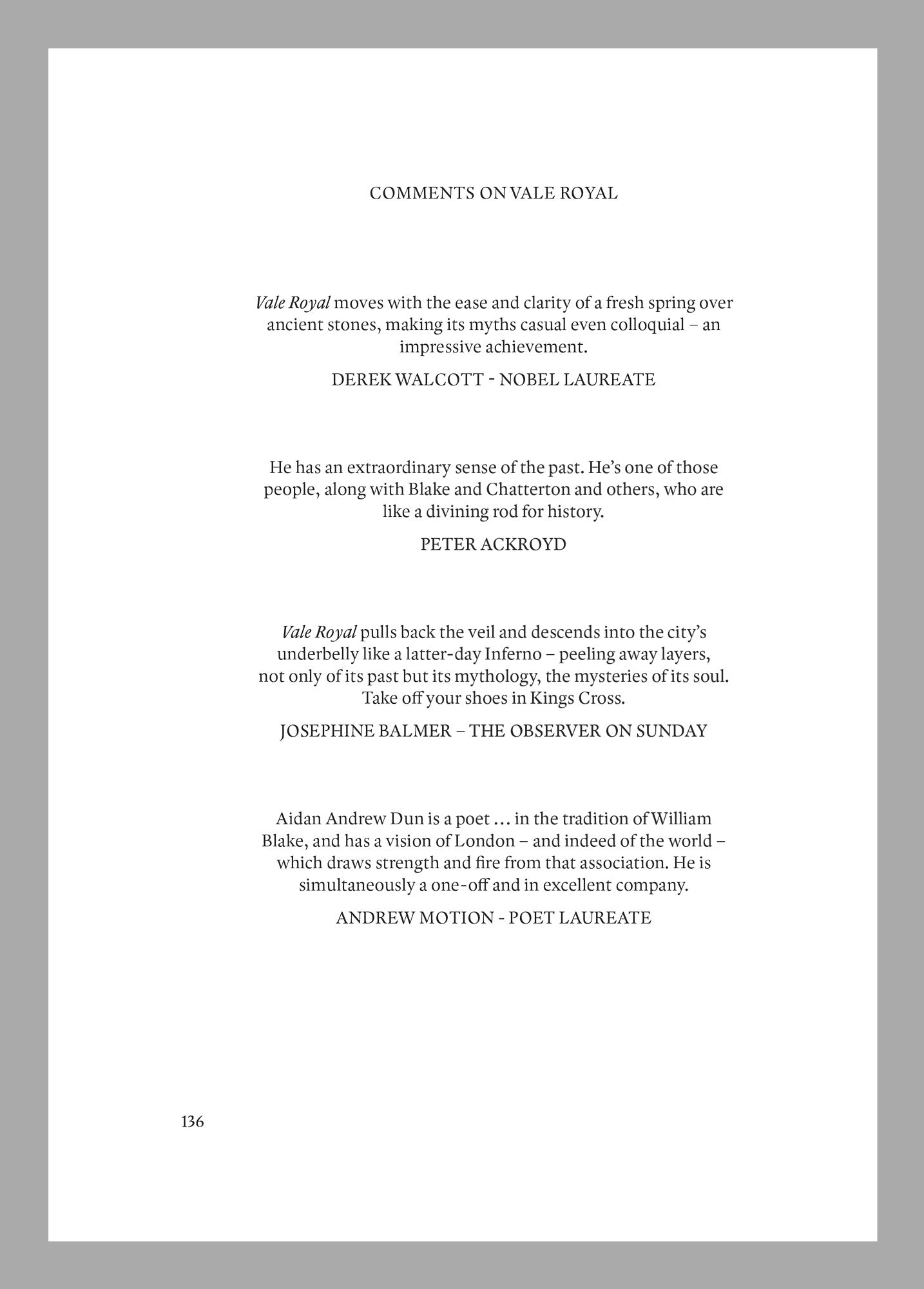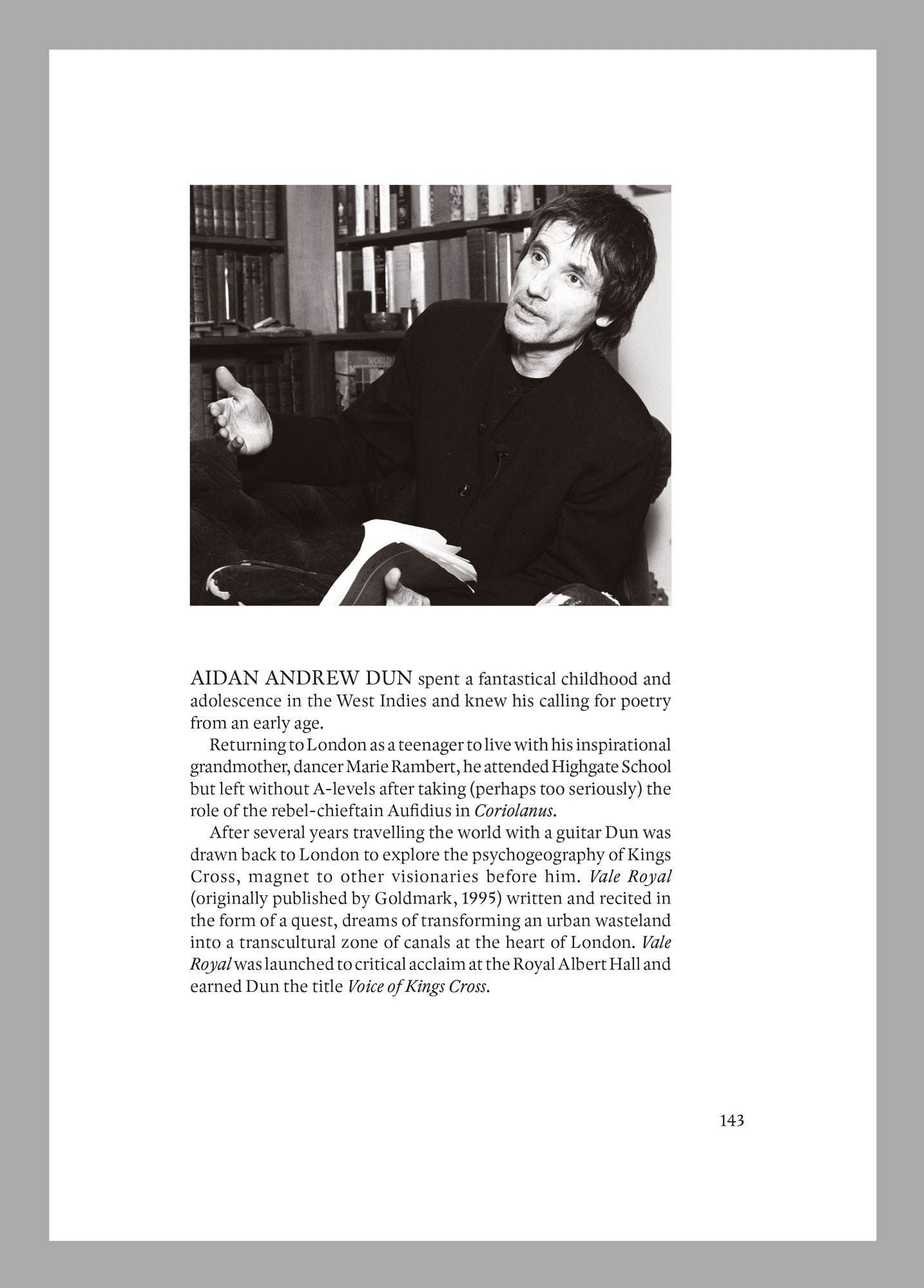 Aidan Andrew Dun grew up in the West Indies, returning to London as a teenager then travelling around the world for more than a decade before writing his first epic poem, Vale Royal. Launched at the Royal Albert Hall, it led to him being dubbed as the 'voice of King's Cross' and the book quickly sold out.