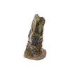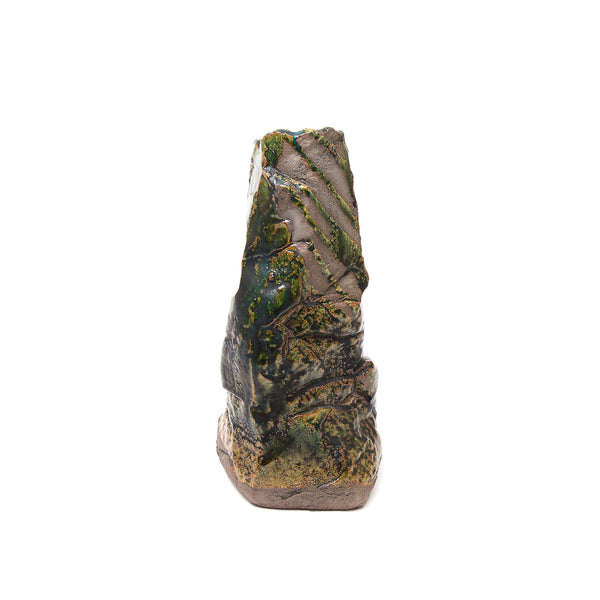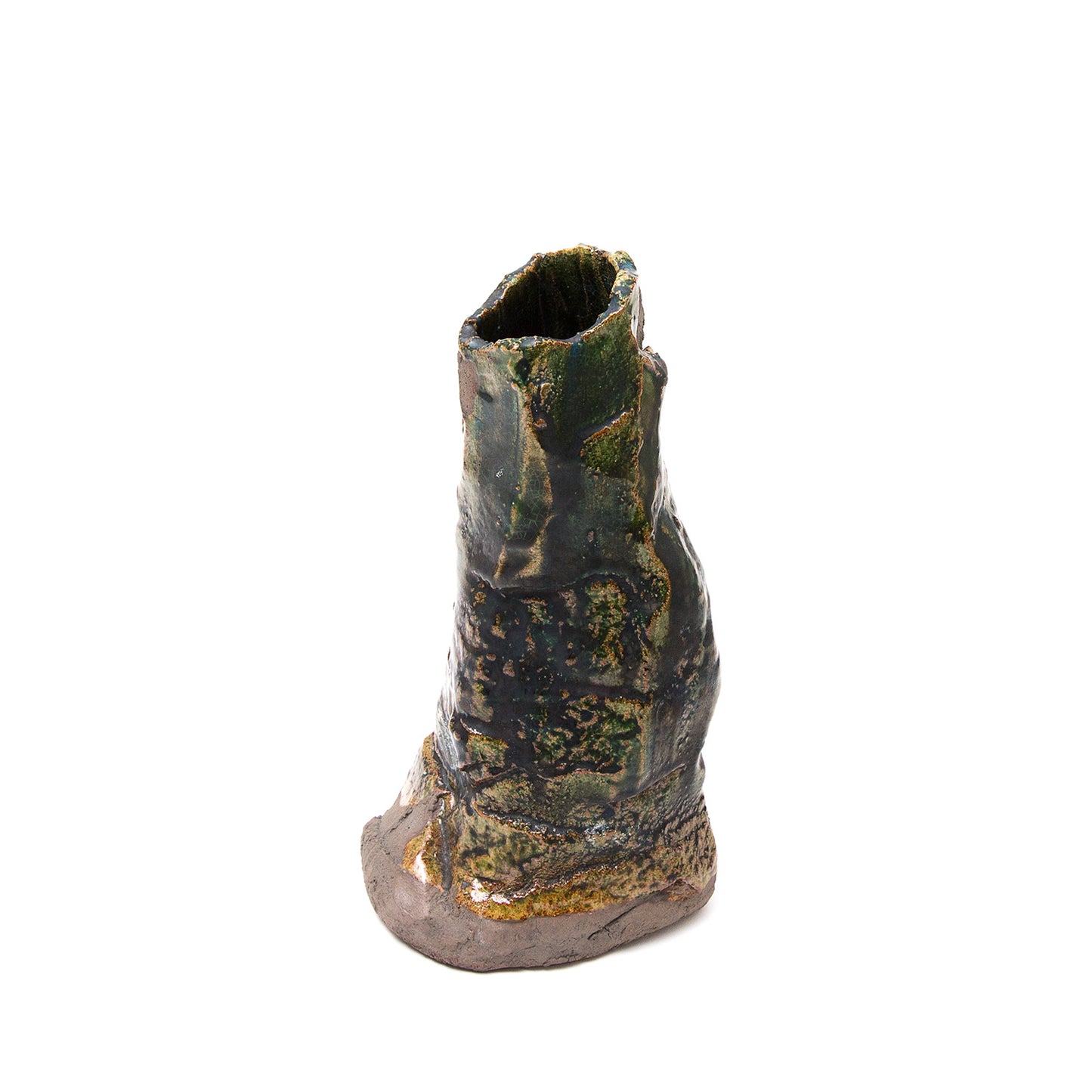 Her sake ‘monsters’ combine Jurassic dinosaur bodies with dainty beaks and curled up feet, while her jungle-green Oribe, cresting and pooling into opaque aquamarine blue, is a thing of prehistoric beauty.