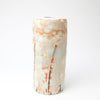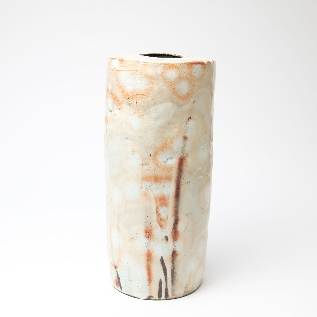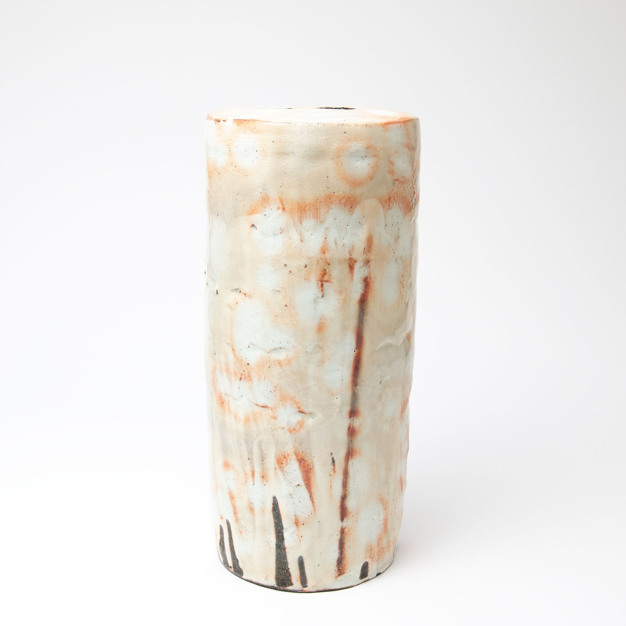 Lee decorates his pots using the traditional Korean method of Punch'ŏng. White slip is applied to a dark stoneware body. Spread with his hands, and incised with tools. Sometimes different coloured slips are flicked over the white surface, in a Jackson Pollack like way. Forest, waterfall, the sky - nature is very much in evidence in Lee's beautiful pots.