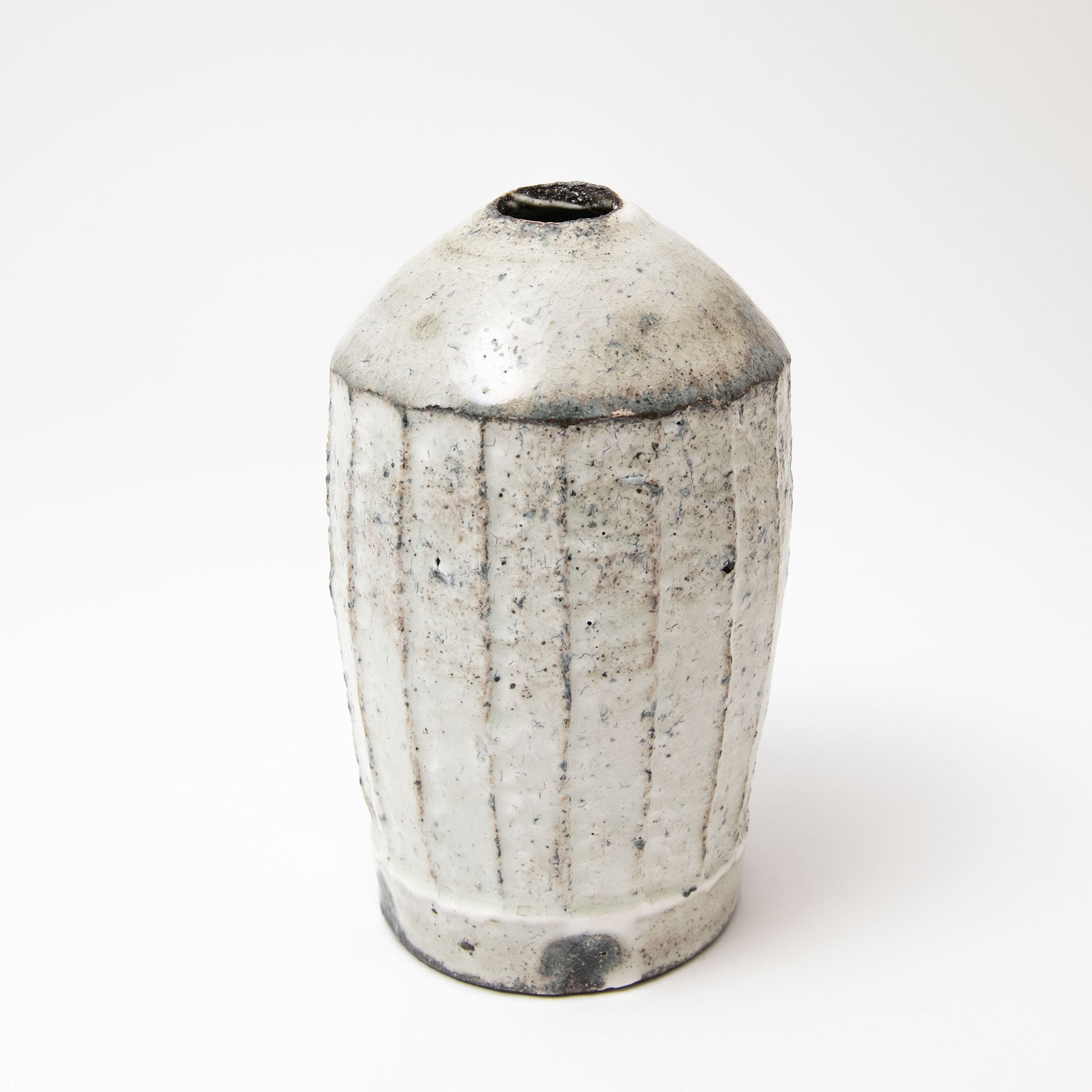 Lee decorates his pots using the traditional Korean method of Buncheong. White slip is applied to a dark stoneware body. A stiff bristled brush may be used to scratch into the semi dry surface of the pot. Forest, waterfall, the sky - nature is very much in evidence in Lee's beautiful pots.