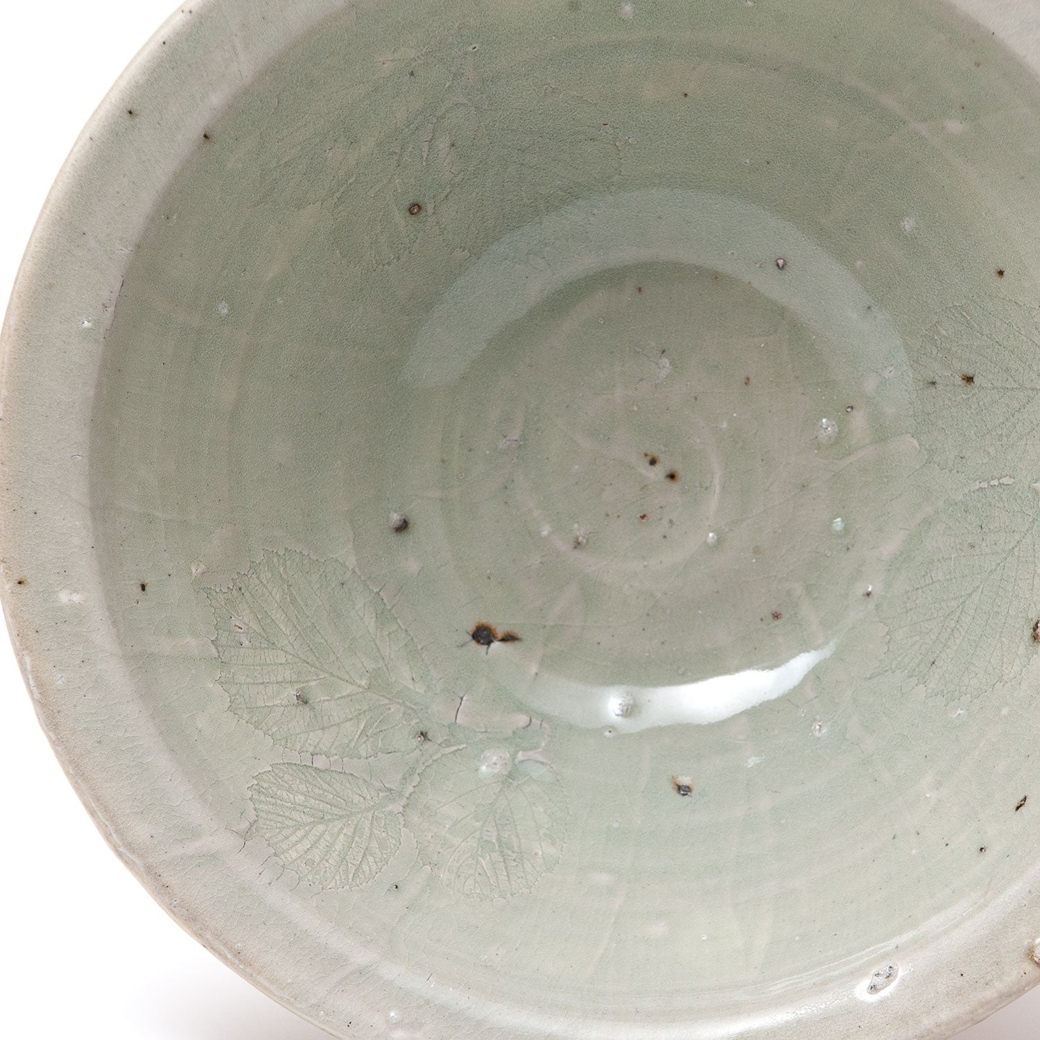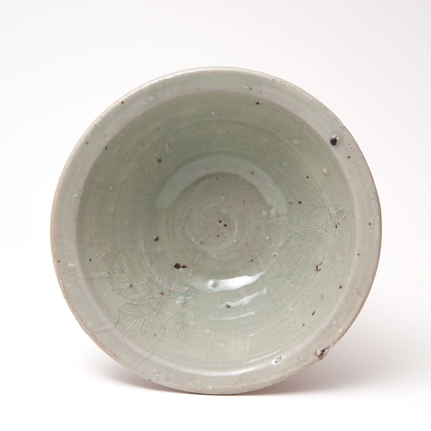 Celadon glaze. Impressed leaf decoration.