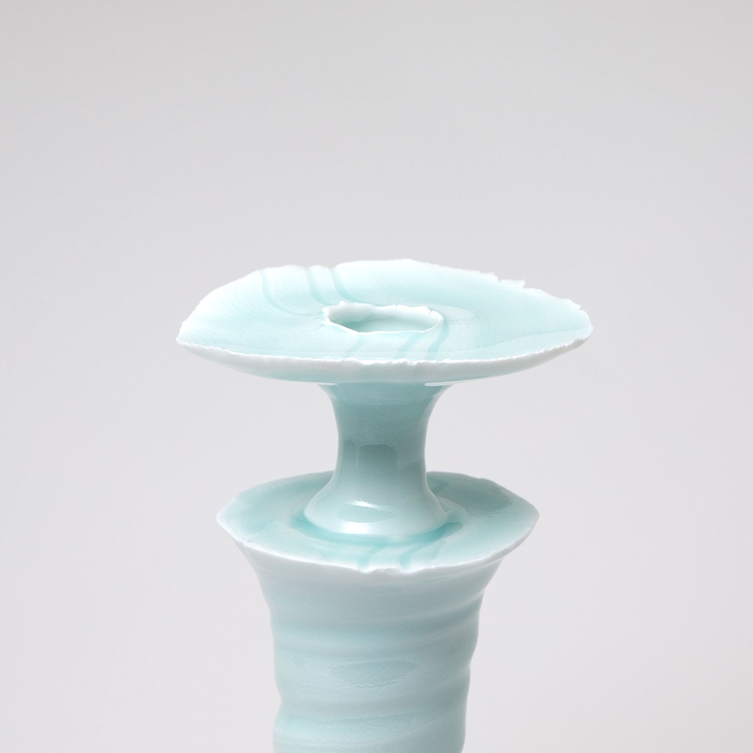 Takeshi Yasuda is a Japanese potter who was born in Tokyo, Japan in 1943. Yasuda trained at the Daisei-Gama Pottery in Mashiko from 1963 to 1966 and established his first studio there. His early work consisted of ash-glazed stoneware, after which he explored Sancai and Creamware. Most recently Yasuda has been working with celadon-glazed porcelain.