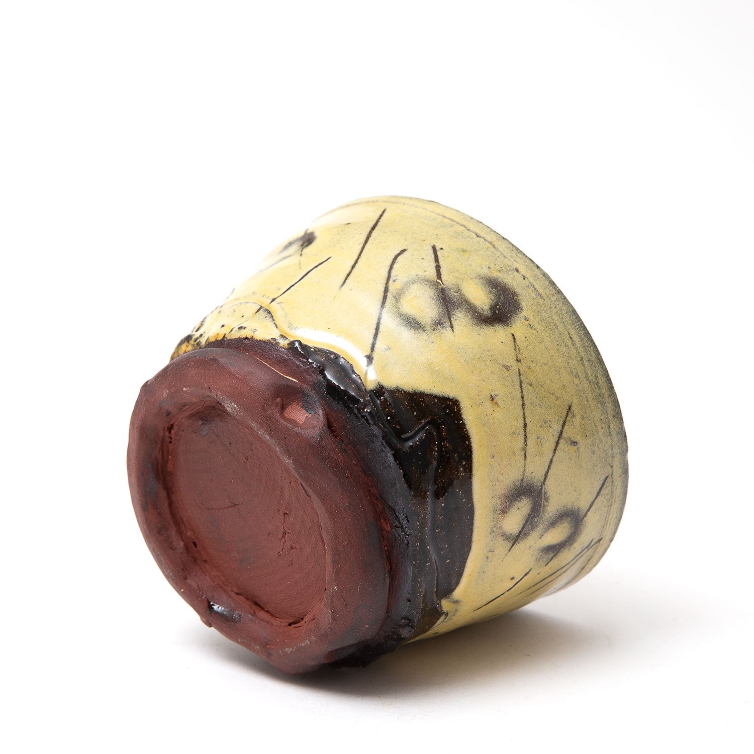 • Yellow with sgraffito • Signed • 10cm x 15cm