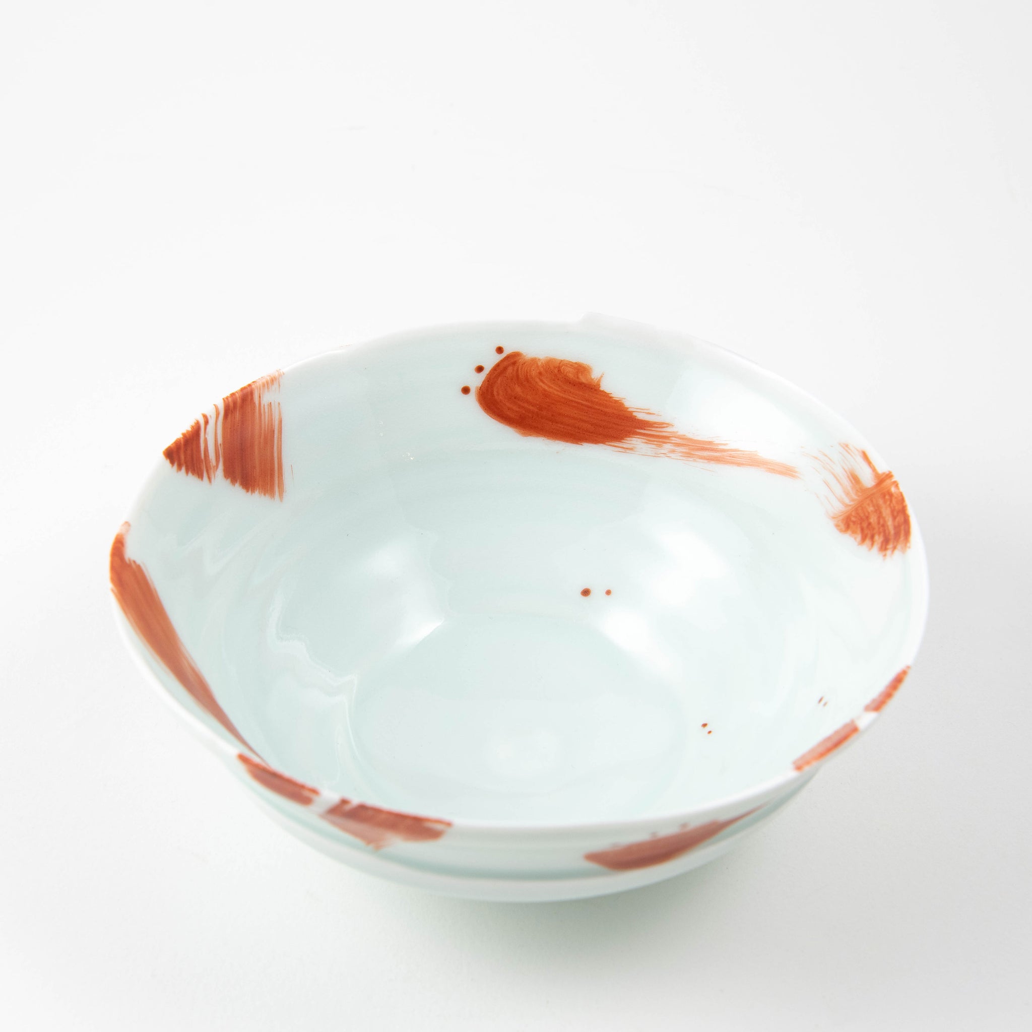 • Porcelain. Qingbai glaze with brushed red • Unsigned • 6.5cm x 16cm