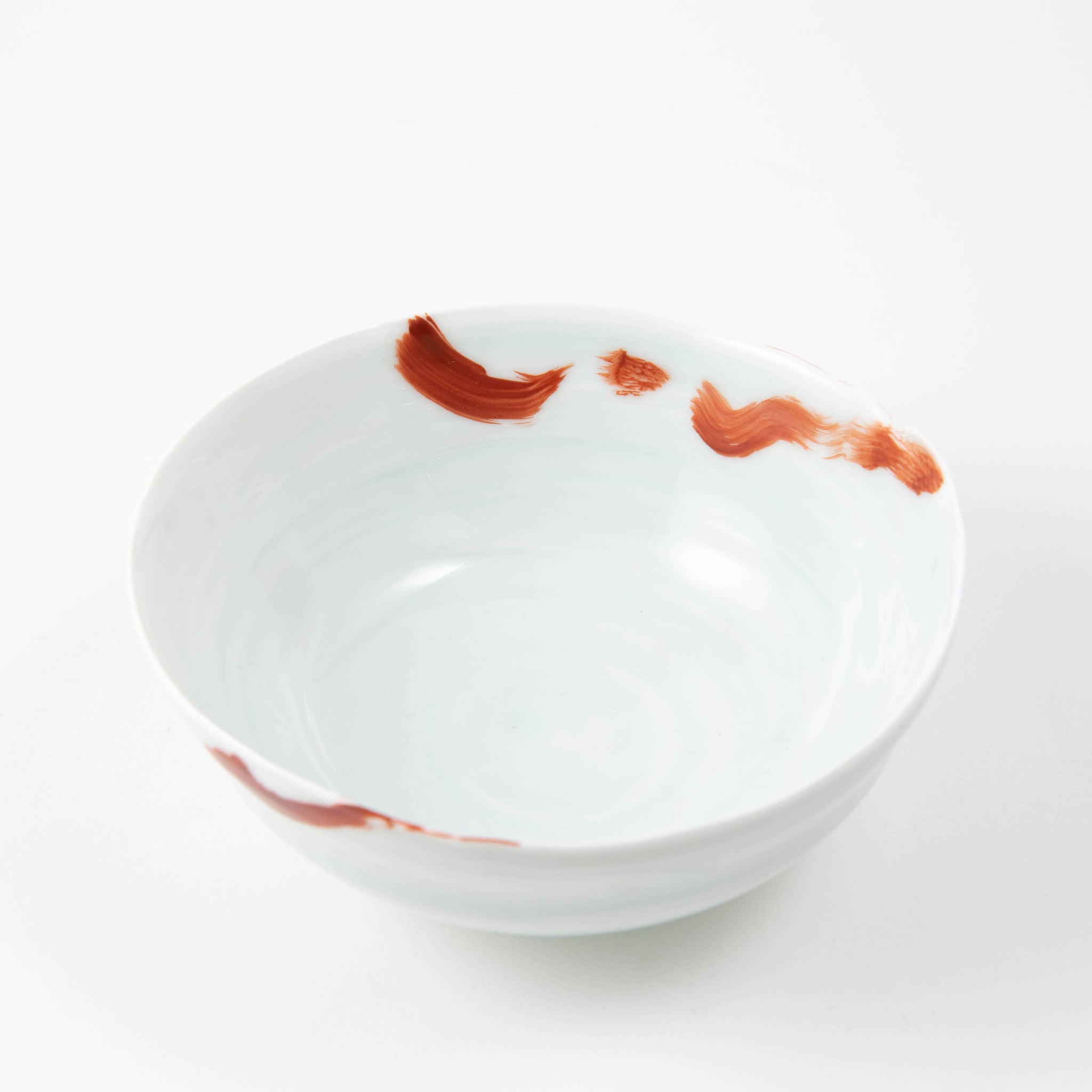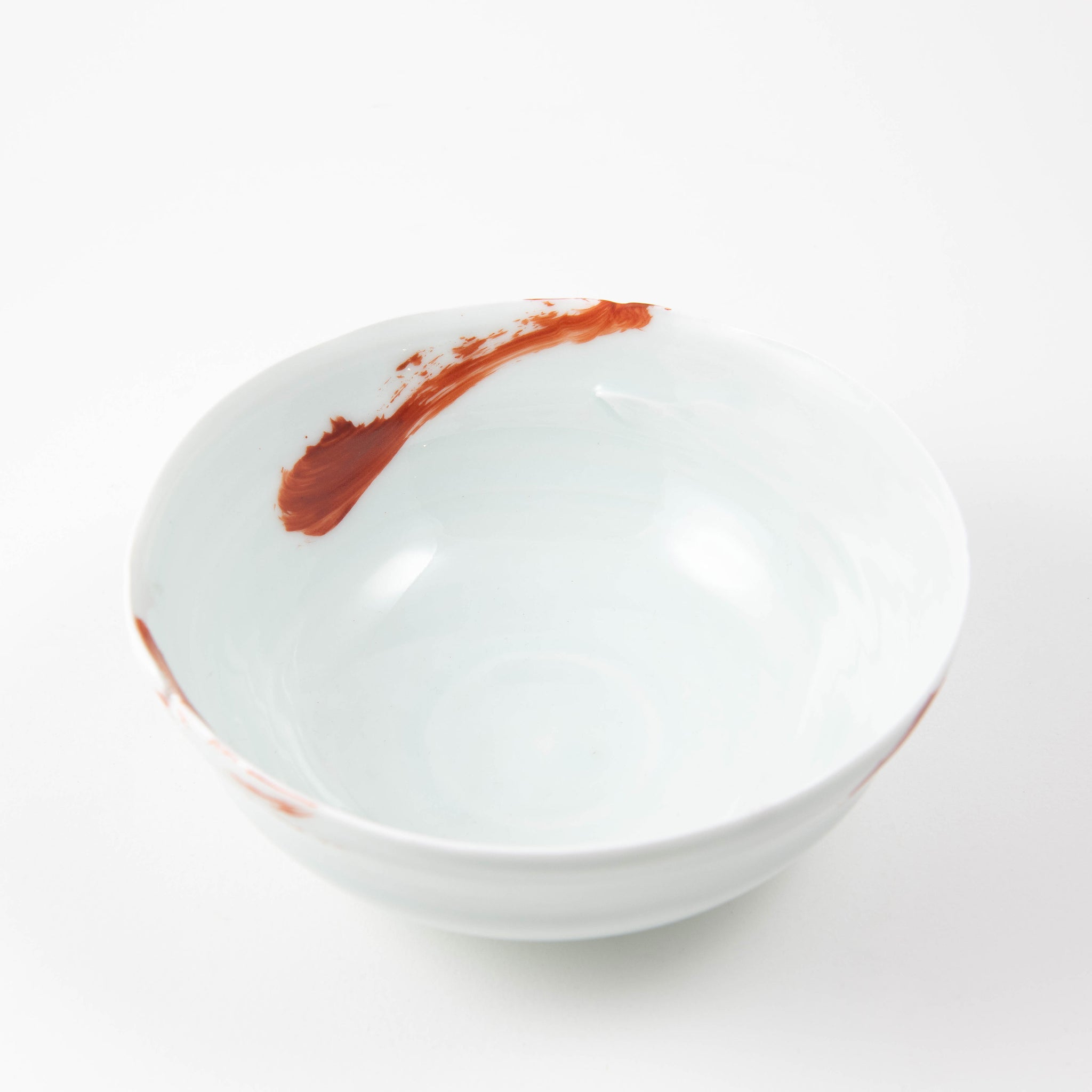 • Porcelain. Qingbai glaze with brushed red • Unsigned • 7.5cm x 16.5cm