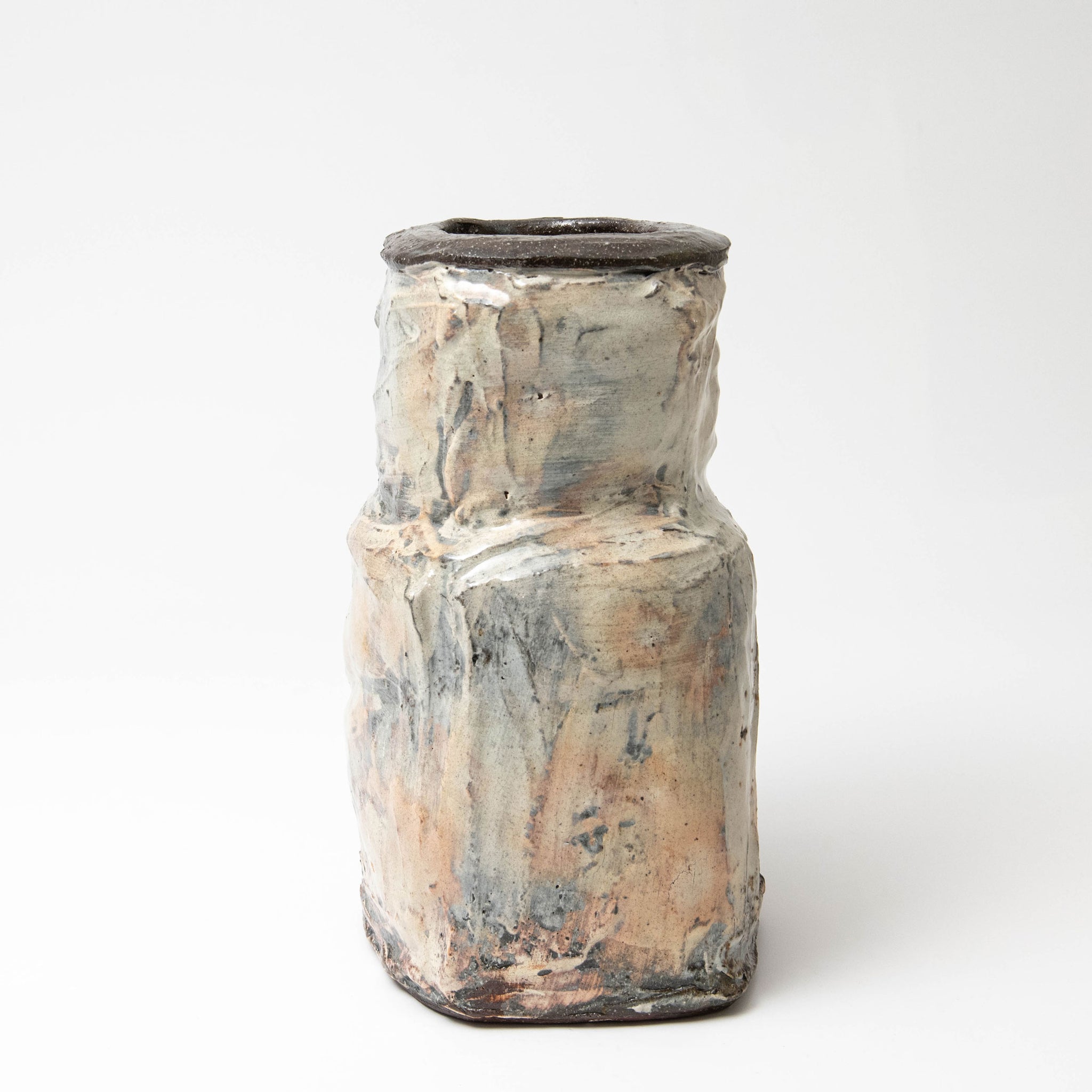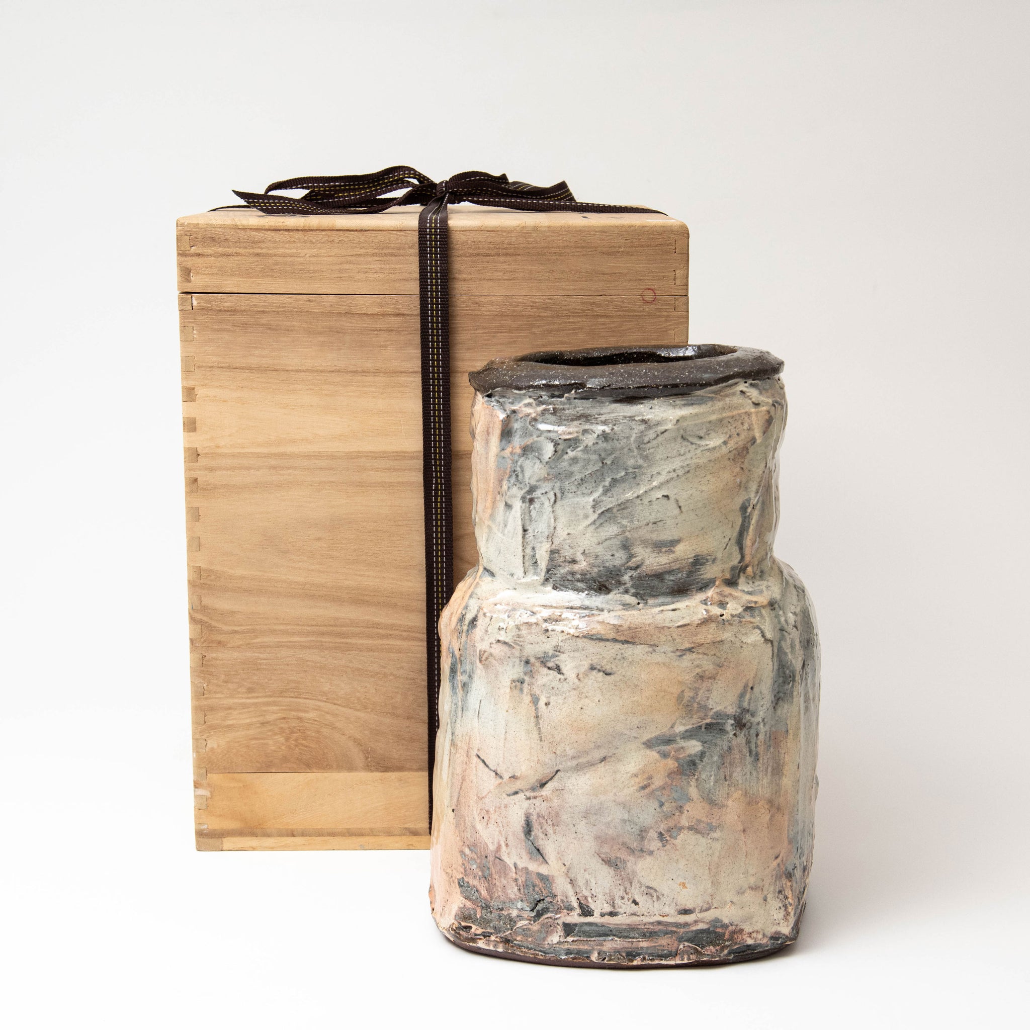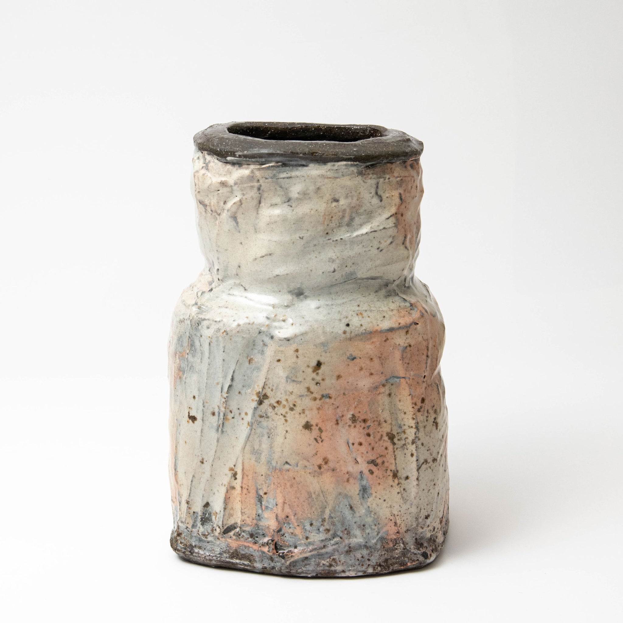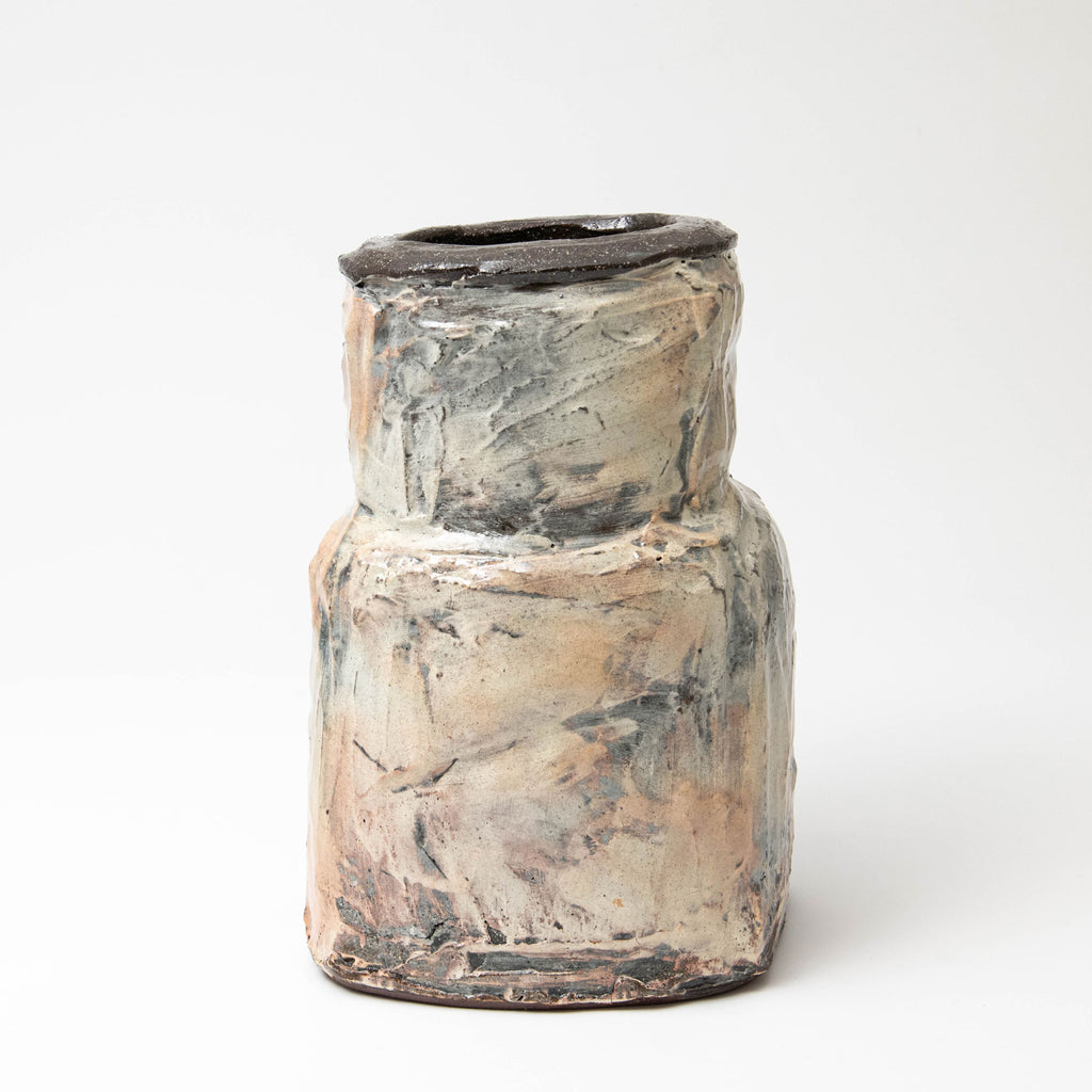 Lee decorates his pots using the traditional Korean method of Punch'ŏng. White slip is applied to a dark stoneware body. Whilst it is still wet Lee uses his hands to spread it over the pot, using tools to incise the slip in expressive motions.