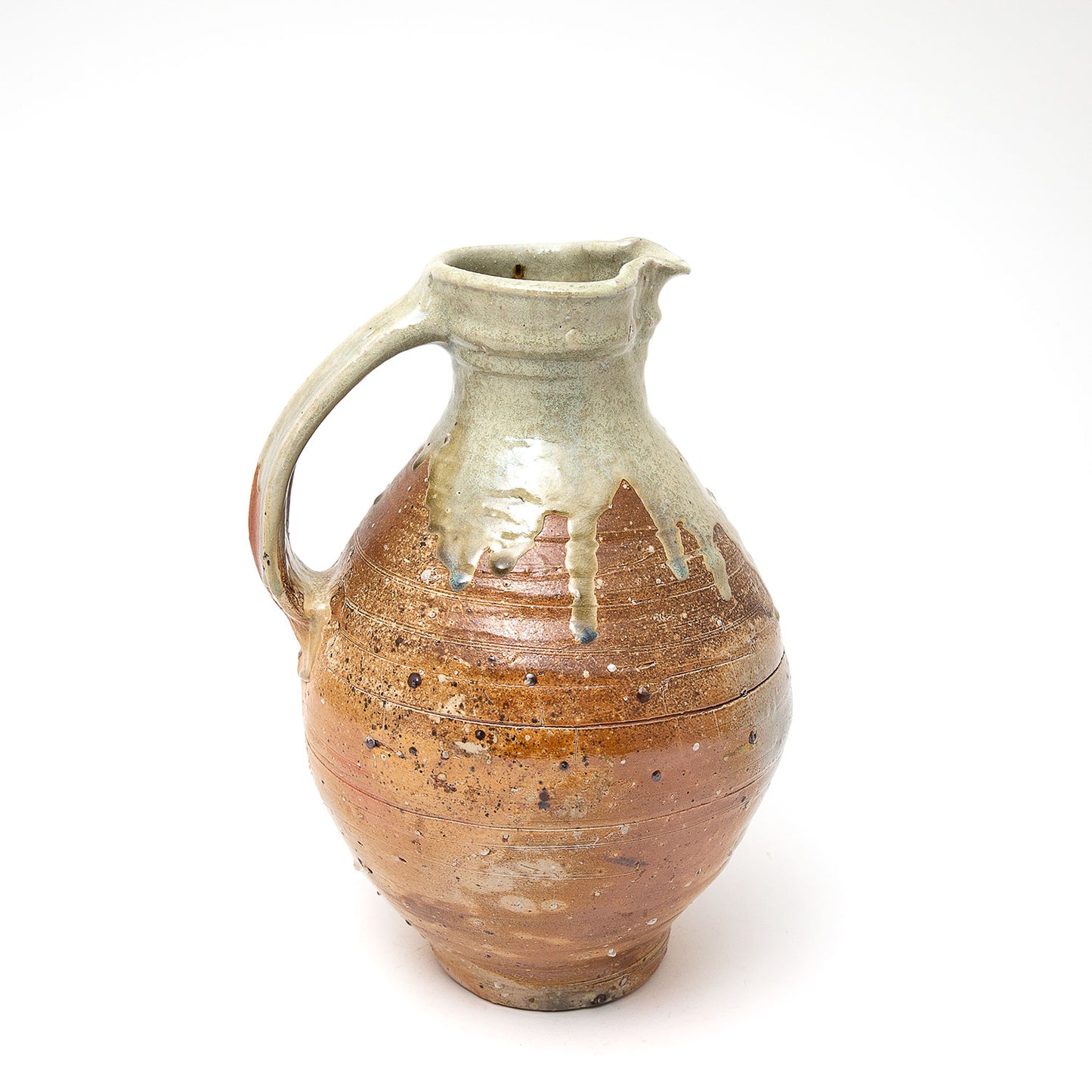 Natural ash glaze occurs in a wood fired kiln when ash particles carried around the kiln by the hot air and flames land and melt on the pots, often creating dramatic colour variations on their surfaces depending on their position in the kiln.