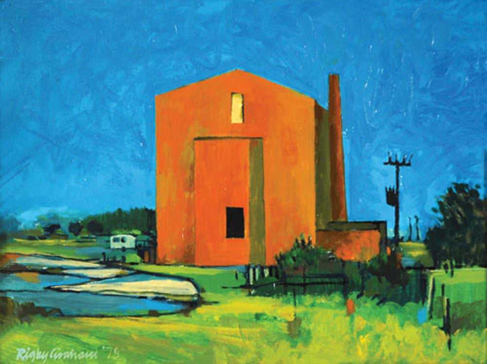 Principally a topographic artist, Rigby Graham was born in Stretford in 1931. He moved to Leicester in his early childhood where he attended Leicester College of Art, specialising in mural painting. After teaching at local schools, Graham returned to lecture at the College of Art, firstly in Graphic Design and Printing, then in Education and latterly in Bookbinding. He retired from teaching in 1983.