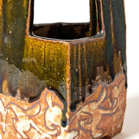 Nic Collins was born in 1958 in Leamington Spa, Warwickshire. A self-taught potter and woodfirer, he started building kilns and wheels during his late teens and early 20s, experimenting with raku, salt glazing and sawdust firings, and using clay sourced from local river banks.