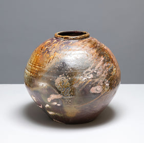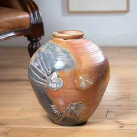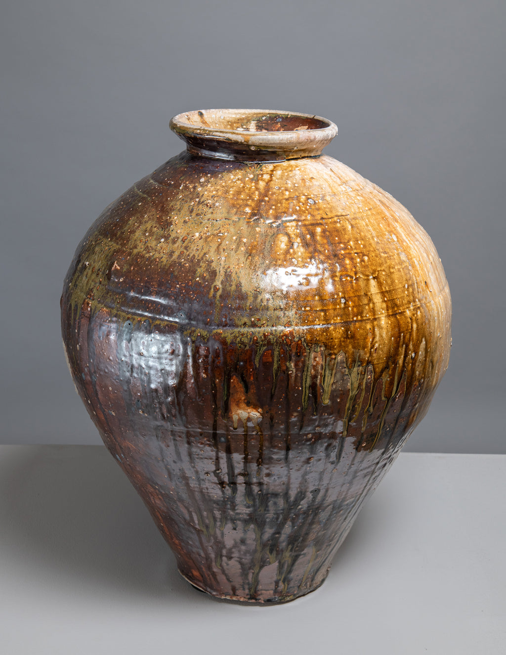 • Tenmoku glaze, natural ashing & shell scars • Signed • 75cm x 60cm