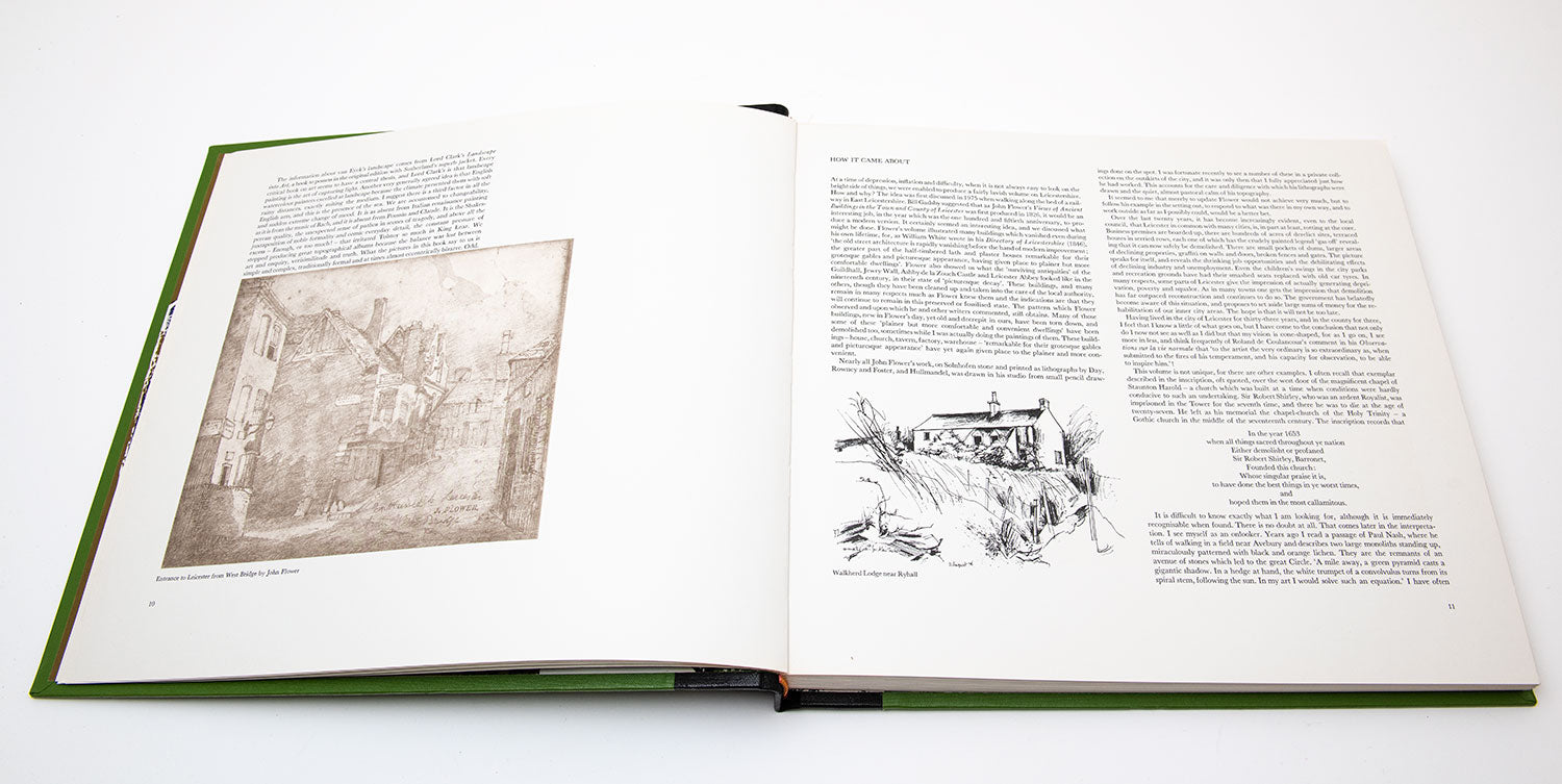 In 1975, Bill Gadsby of the Gadsby Gallery Leicester commissioned Rigby Graham to make some twenty paintings depicting his view of Leicestershire. They were for reproduction in a proposed book on the county, a homage to the lithographer John Flower who had done similar 150 years previously in his Views of Ancient Buildings in the Town and County of Leicester.