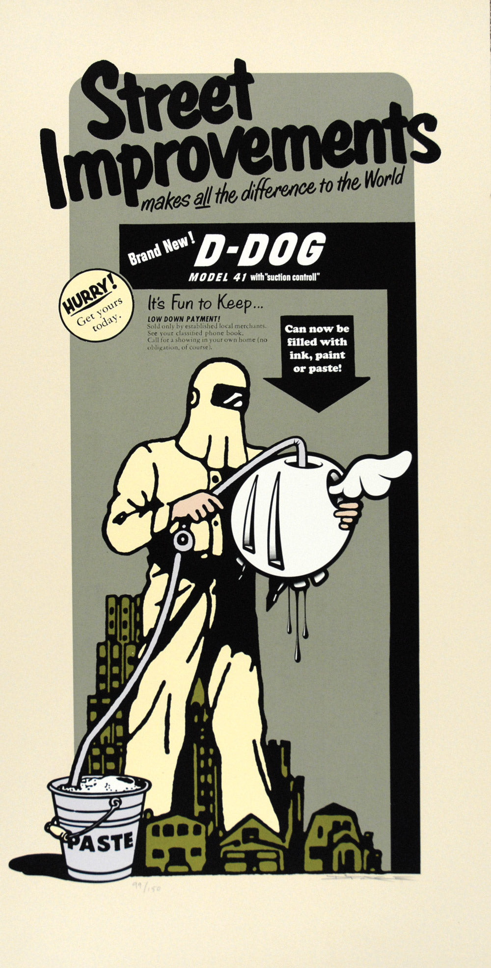 Screenprint by this multimedia street artist, prolific in London with his spray paint, stickers, posters, and stencils.