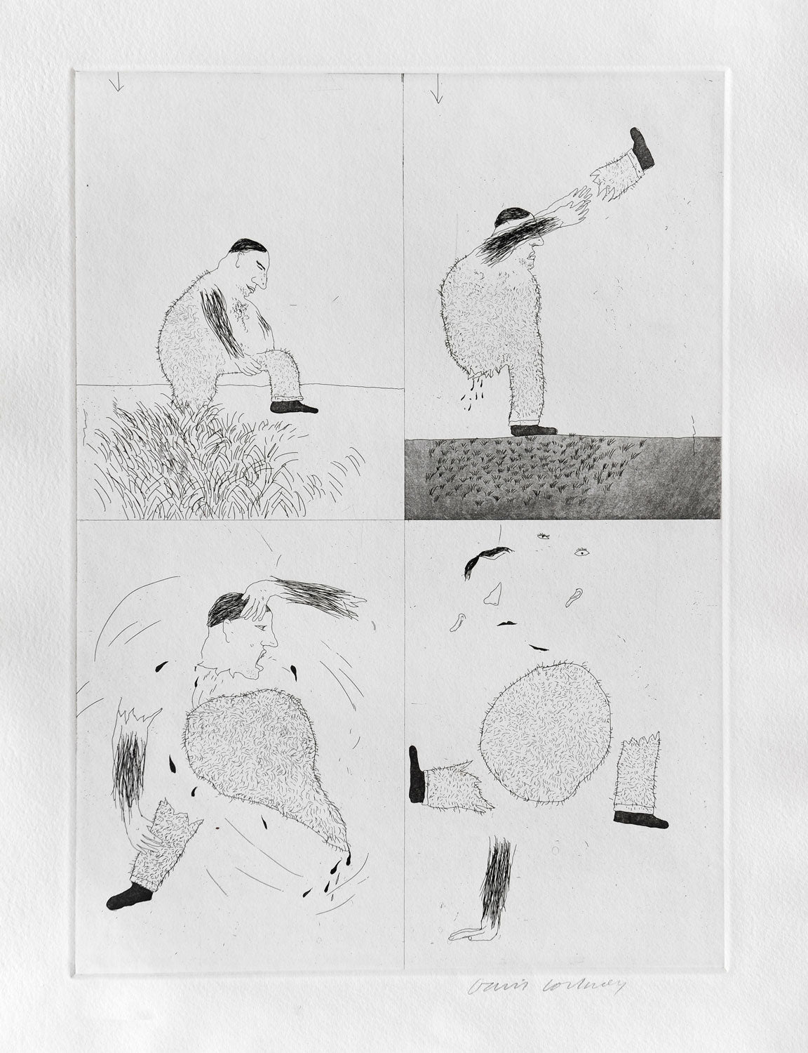 Hockney’s work is held in galleries internationally and he has had a continuous stream of one-man shows around the world. Notable works for the printed page are his illustrations for Cavafy’s Poems, 1967, and Six Fairy Tales of the Brothers Grimm, 1969. He was elected RA in 1991 and was made Companion of Honour in 1997.