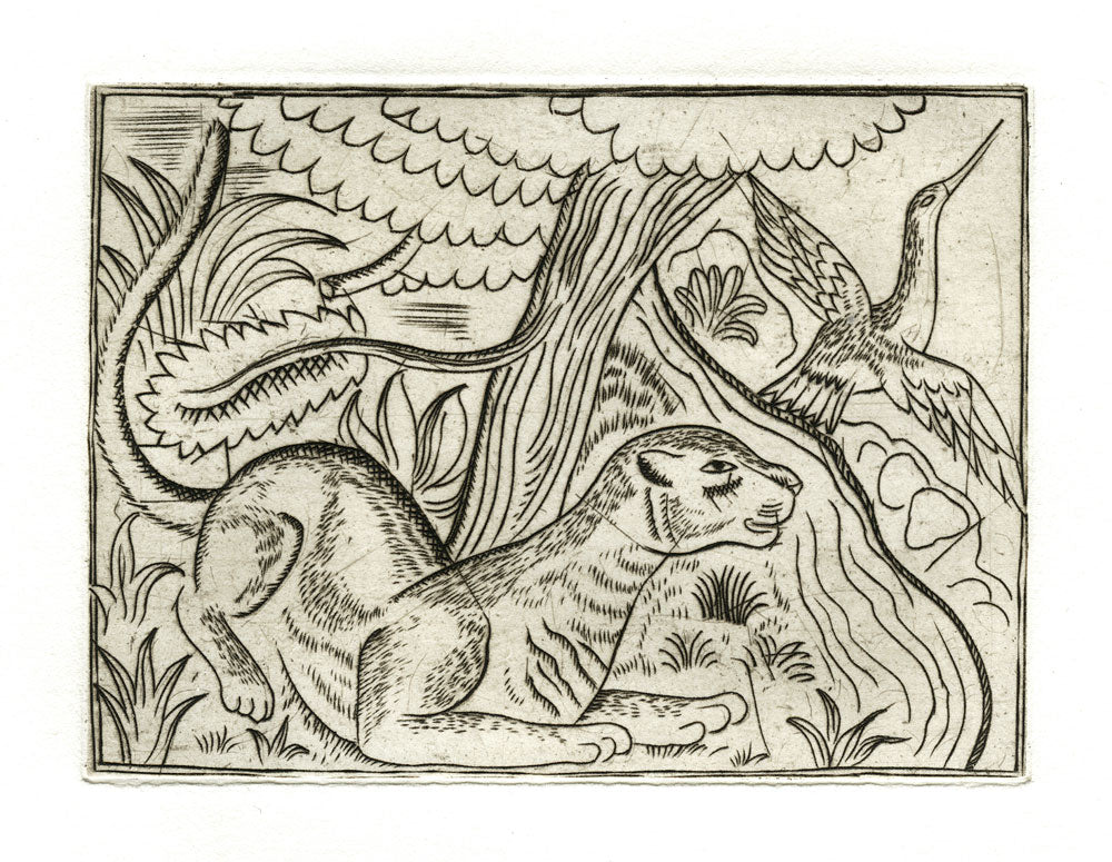 Much of Jones’ work was for the Golden Cockerel Press, with illustrations for Gulliver’s Travels (1925), the Book of Jonah (1926), and finally The Chester Play of the Deluge (1927), though he also produced a number of his own written works, the most important of which include The Roman Quarry, In Parenthesis, and The Anathemata. He was later appointed CBE in 1955.
