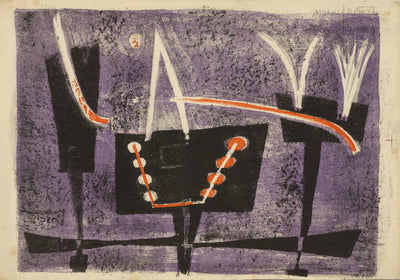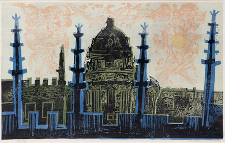 Rothenstein became one of the most experimental printmakers in Britain during the ‘50s and ’60s. As well as found objects such as wood offcuts and metal debris, he incorporated fresh 20th century imagery into his relief prints, combining photographic material with traditional woodcuts and linocuts. Numerous major galleries currently hold his work and he was made Hon. RE and elected RA in 1983.