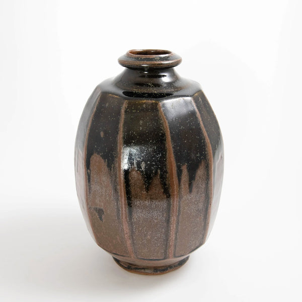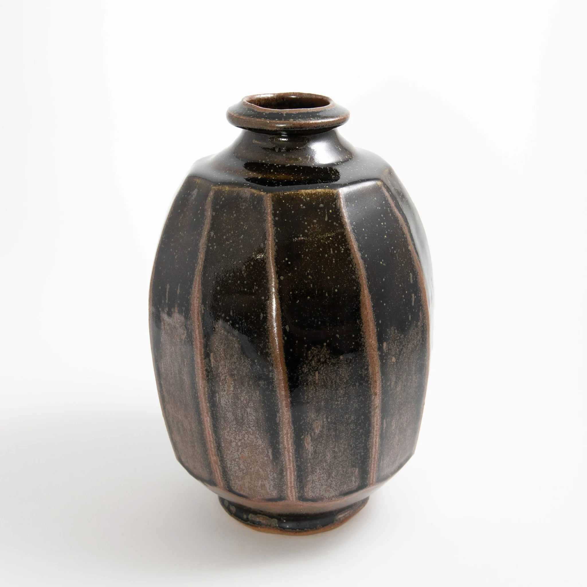 • Faceted. Basalt black glaze • Signed • 24cm x 16.5cm