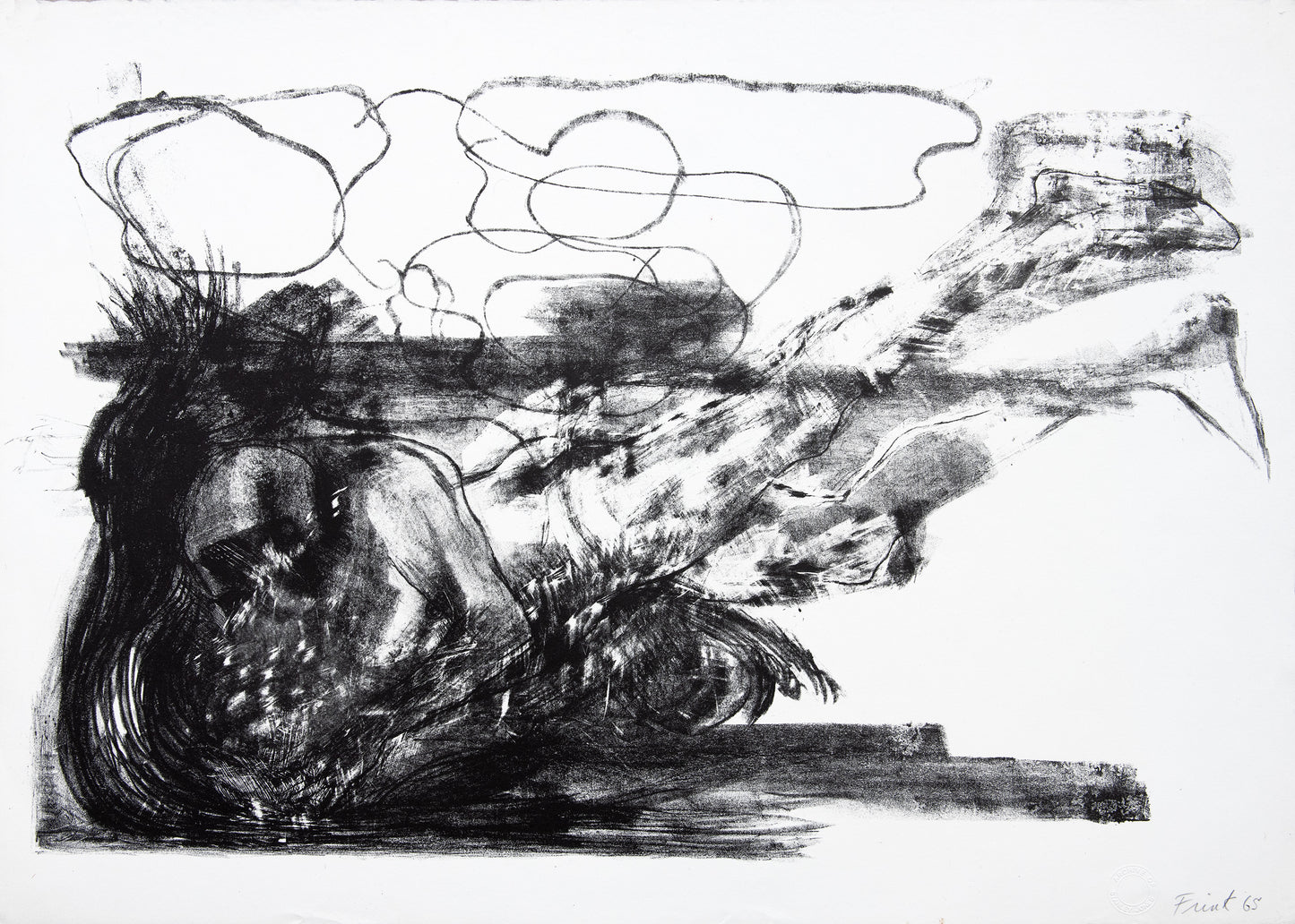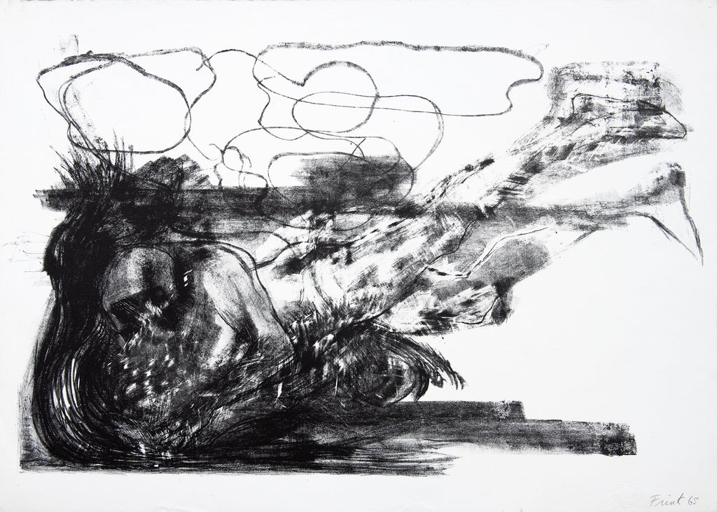 Frink taught at the Royal College of Art and also embarked upon her printmaking career, primarily producing lithographs and etchings. As one of Britain’s leading sculptors, Frink received many public accolades including a C.B.E. (1969), being made a Royal Academician (1977), a Dame of the British Empire (1982) and a Companion of Honour (1992). Elisabeth Frink died in 1993.