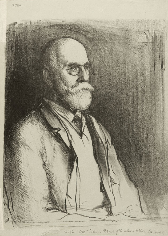 Early in her career Gabain decided to concentrate largely upon lithography, her subjects often lone girls or women in domestic interiors, usually working in black and white and occasionally employing colour to highlight details. During World War II Gabain was appointed an Official War Artist and her lithographs continued to be purchased until the end of the war. She died in 1950.